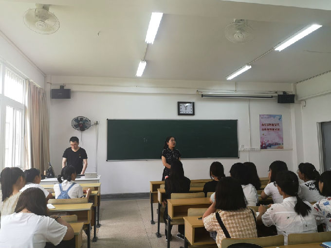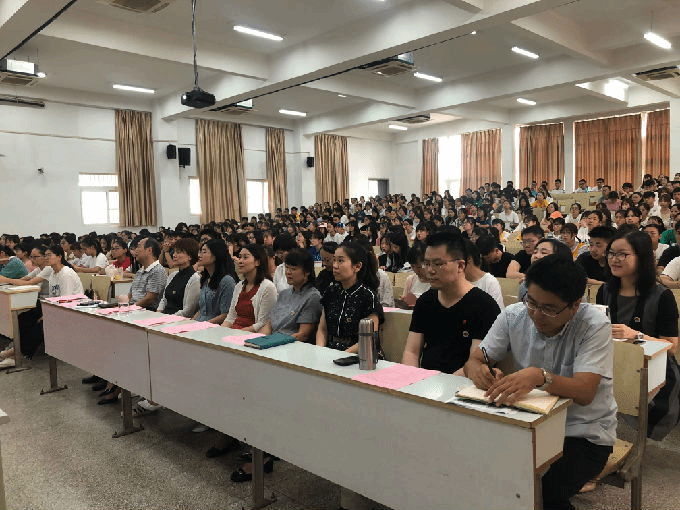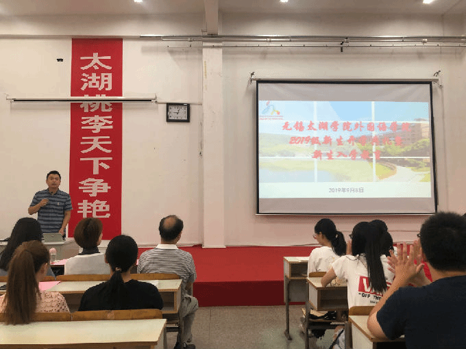 9月9日下午,外国语学院党总支副书记俞昊波就我校历史、办学特色、专业前景等对2019级全体新生开展入学教育。