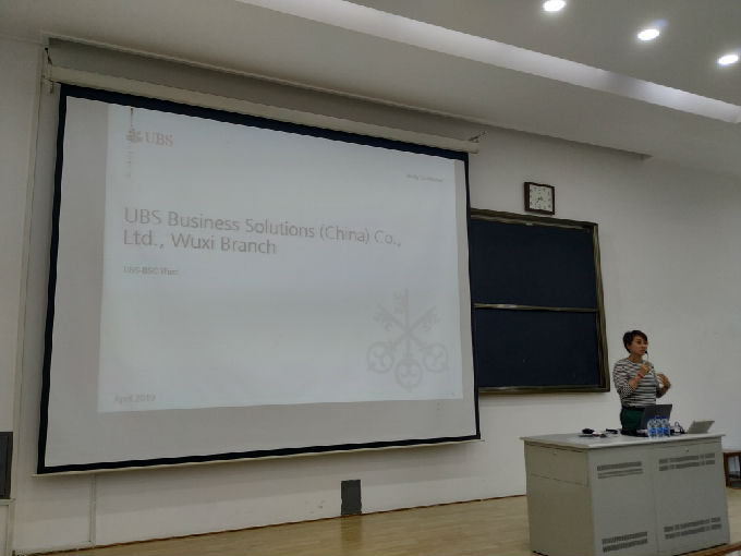 首先,Jessica为同学们播放瑞银公司介绍视频。接着,张晶女士为同学们介绍UBS(瑞银集团)。瑞银集团是欧洲最大的金融控股集团,总部设在瑞士苏黎世,目前遍布全球所有主要金融中心。它在52个国家设有办事处,其雇员约34%人在美洲工作,34%人在瑞士,18%人在欧洲的其他国家,中东和非洲,14%在亚太地区。瑞银集团在全球雇用了大约60000人。并且,张女士讲解了瑞银公司在中国甚至具体到在无锡的运营情况。
