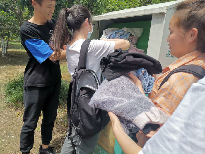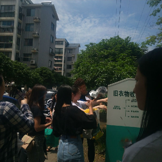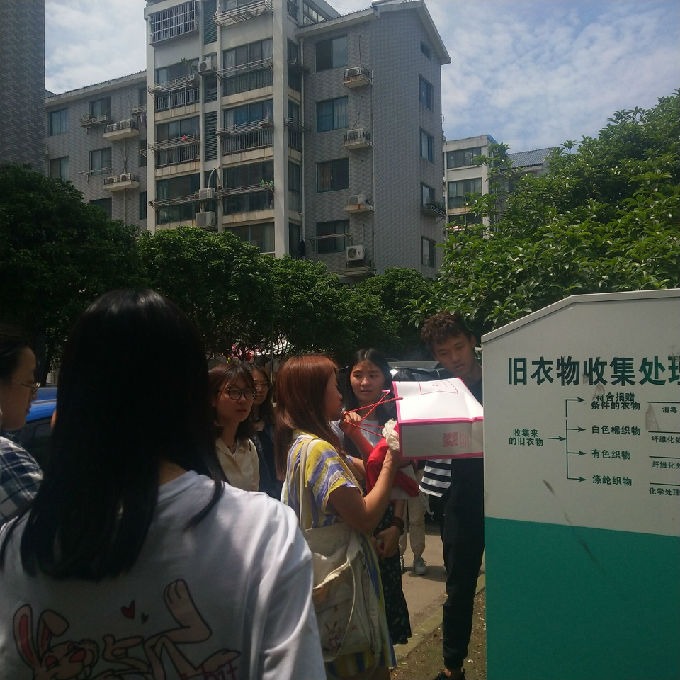 为号召大学生回馈社会,奉献爱心。在全班乃至全校营造乐于奉献,关爱他人的良好氛围,同时提高大学生的节约环保意识,外国语学院商英1602班全体成员在团支书的带领下于5月28日下午在公益路社区开展了捐衣志愿活动。捐一件衣物,献一片爱心。区区旧衣,仁爱不尽,进一步弘扬了扶贫济困、乐善好施的传统美德。