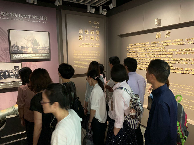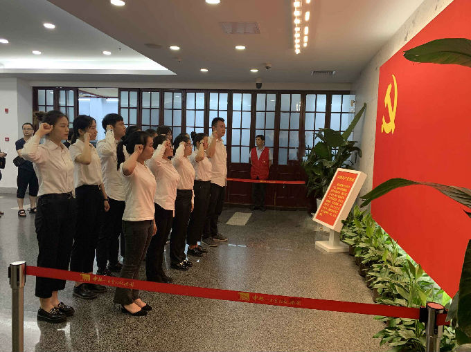 下午,学生党员们在俞书记的带领下,在中共一大会址纪念馆进行了庄重的入党宣誓,同行其他党员也受到极大鼓舞,一同温习了入党誓词。随后,党员同志们实地参观了中共一大会址纪念馆,再次回顾了中国共产党成立的历史背景、中国共产党早期组织的成立及其活动。参观活动结束后,党员同志们分组进行了活动感悟的分享。吕莉同志表示党旗下的入党宣誓令她内心获得极大震动。花荣臻同志表示对旅法学生的合照最为印象深刻,先进青年学生们的坚定眼神和不屈的意志鼓舞我们要将“小我”投入到“大我”之中。陈原同志表示,列强瓜分中国的时局图虽然在历史课本中已经学过,但再次在纪念馆中看到仍然感到悲愤,“落后就要挨打”的历史教训我们要牢记于心。董宏宇同志表示,纪念馆中的优秀共产党员墙激励我们要向先烈看齐,从当下做起、从小事做起,努力奋斗,无愧于共产党员的称号。