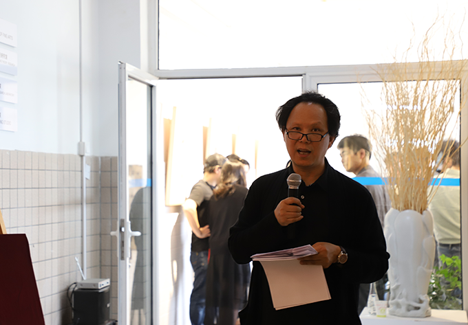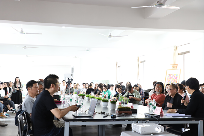 研讨会以“纯色的艺术表现与多元的艺术交流”为主题,出席展览开幕式的部分领导嘉宾、学院老师、学生代表参加研讨会,研讨会在欢快的交流声中进行。朱宗明副院长给参与研讨会的领导嘉宾们详细的介绍了阿森老师,并讲述了自己和阿森老师的故事和情感。与会的领导嘉宾们也纷纷发表了自己对于当代艺术的观点。