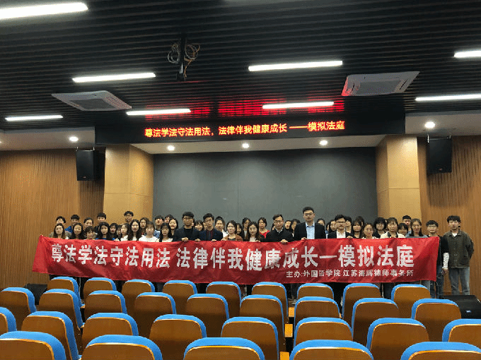 为了响应江苏省教育厅关于开展首届全省青少年法治宣传周的通知,让学生充分了解法律,掌握基本的法学知识、理解宪法和法律的基本精神、基本规范,提高对法的重要性的认识,增强法律意识,外国语学院于5月7日下午在大学生活动中心A开展“尊法学法守法用法,法律伴我健康成长”模拟法庭,外国语学院法学系主任王艳华、学工秘书姚靓雯出席。本次模拟法庭邀请了江苏海辉律师事务所徐琰、赵小舟、王诏炜、周一心、奚晨、嵇智捷等人参与。