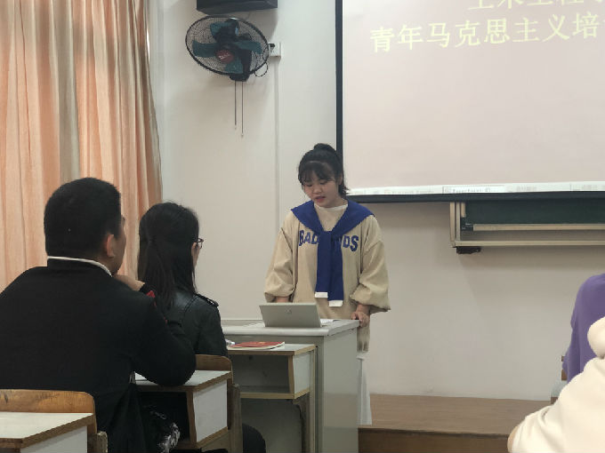 李素洁老师先向各位同学提出了一个问题“大家为什么要参加青年马克思主义者培训班?”引出当代青年人学习马克思主义的意义所在。李老师指出,学习马克思主义有助于大学生树立科学的世界观,提高思想道德素质。马克思主义哲学不仅仅为我们从中国实际出发建设社会主义指明了思想原则,而且为我们坚定社会主义信念,不断解决实践中提出的新问题提供了思想武器。随后,李老师提及了“运动是绝对的,静止是相对的”这一概念,由此引出同学们在日常生活中遇到一些繁杂琐事时要保持积极乐观的态度,不断前进,困难终究会走过去,不要报以消极的态度面对人生。