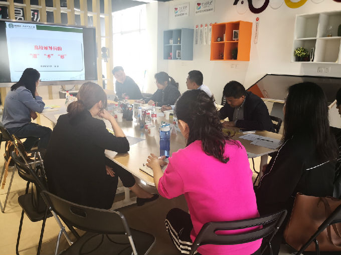 下午学工处副处长景飞老师就大学生思想政治教育工作的创新与发展和我院辅导员进行了深入的研讨,作为学工人,我们需要精准发力,建立本科全程化育人,我们需要做大学生的思想引擎,做好思想政治教育提升工程,我们需要做好辅导员队伍的固本强基工程,我们需要推动信息化平台互联互通。
