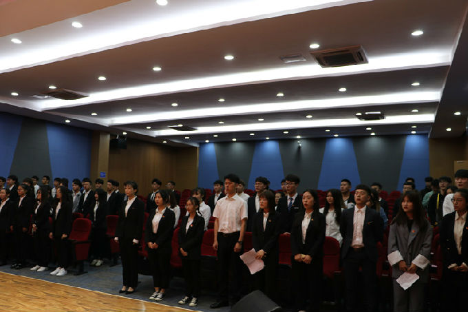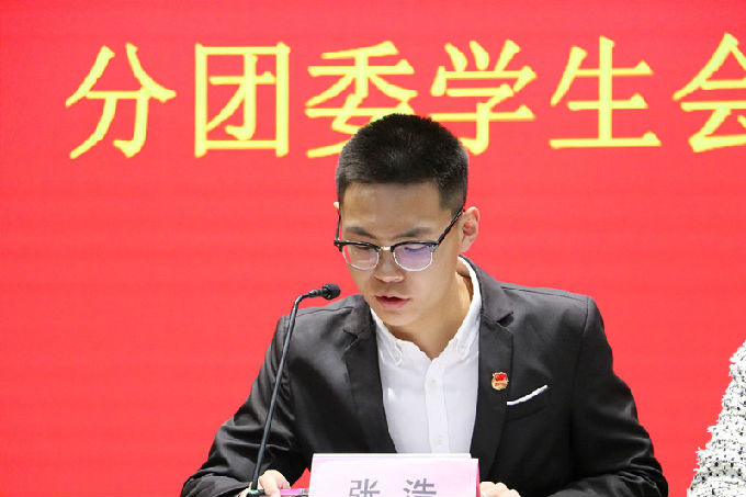 本次大会分为八个议程,由分团委学生会主席张浩主持。第一项议程,会议开始,张浩宣布大会开幕,全体与会人员起立唱国歌。