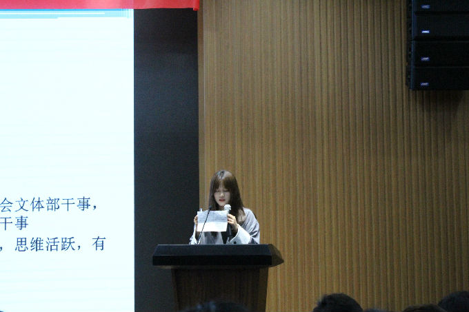 第二项议程由木工程学院分团委学生会书记戎婷竹老师发言,首先预祝本次大会的顺利召开,并代表学院全体师生对上一届团学干部在学院大学生思政教育和第二课堂建设中所发挥的积极作用以及为学校的改革、发展、稳定做出的贡献表示感谢,最后也祝愿新一届团学干部继往开来,再创辉煌!