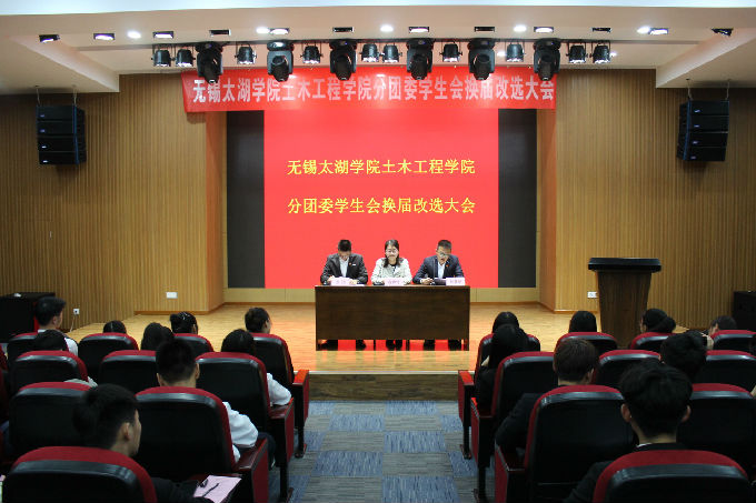 2019年4月22日晚,无锡太湖学院土木工程学院分团委学生会换届改选大会在大学生活动中心A 顺利召开。土木工程学院分团委学生会书记戎婷竹老师,副书记鲍晨皓,土木工程学院分团委学生会主席张浩出席本次会议。