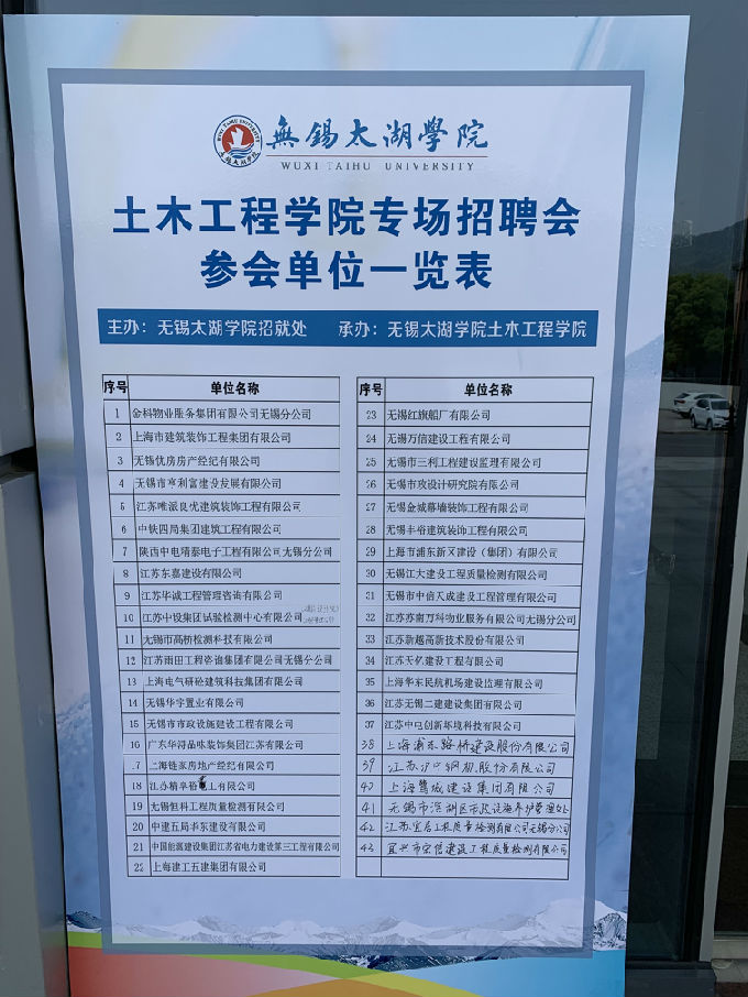 此次招聘会吸引了来自行业内的四十三家用人单位,相比往年招聘会在数量及规模上有了大幅的增长,其中不乏有像无锡市市政设施建设工程有限公司、江苏无锡二建建设集团有限公司、无锡市滨湖区市政设施养护管理处、中国能源建设集团江苏省电力建设第三工程有限公司、中铁四局集团建筑工程有限公司、上海建工五建集团有限公司、上海华东民航机场建设监理有限公司这样的优质企业,现场气氛热烈。应聘同学们手持自己精心制作的简历,在工作人员的引导下有序进场,了解各个岗位的要求,行业发展状况,陈述个人情况,并将自己精心准备的简历递交给各个企业的面试人员,并展开交流。面试人员通过查看面试者的简历和提出一些有针对性的问题,来具体了解面试者的实习经历,教育背景,技能掌握,个人素质等方面。有的企业还会针对面试学生的问题提出自己的建议,和蔼的态度和有趣的交流让有些许紧张的同学们逐渐放松,大胆地阐述自己对岗位的看法,充分地展现个人的素质和能力。整个招聘会规范有序,热闹非凡。参会单位普遍认为我校人才培养质量较高,学生踏实肯干,适应能力强。还有部分参会单位直接在现场进行面试,当场选拔,签订就业协议。