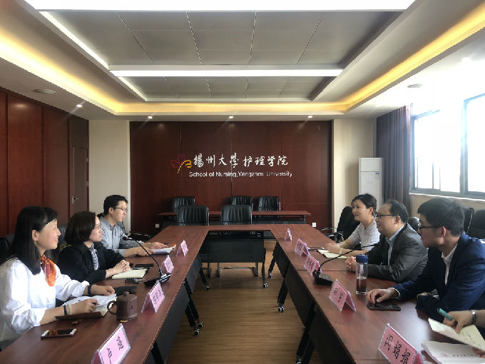 下午护理学院院长龚卫娟、护理学院党委副书记邹明玮、护理学院团委书记高强等领导热情接待我院一行人,并就扬州大学护理学院基本情况与我院作交流。会上,我院副院长周鸣鸣与扬州大学护理学院龚卫娟院长就学科建设、资格考证、新专业申报等一系列问题作深入研究和探讨。最后龚卫娟院长等领导带领我院一行参观扬州大学护理学院实验教学中心,并合影留念。