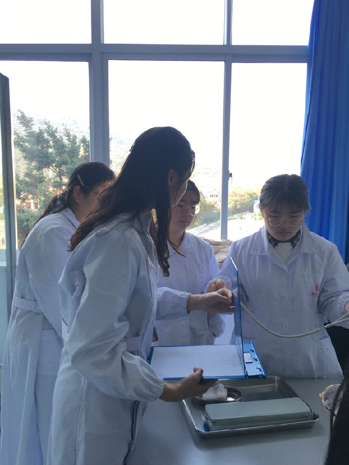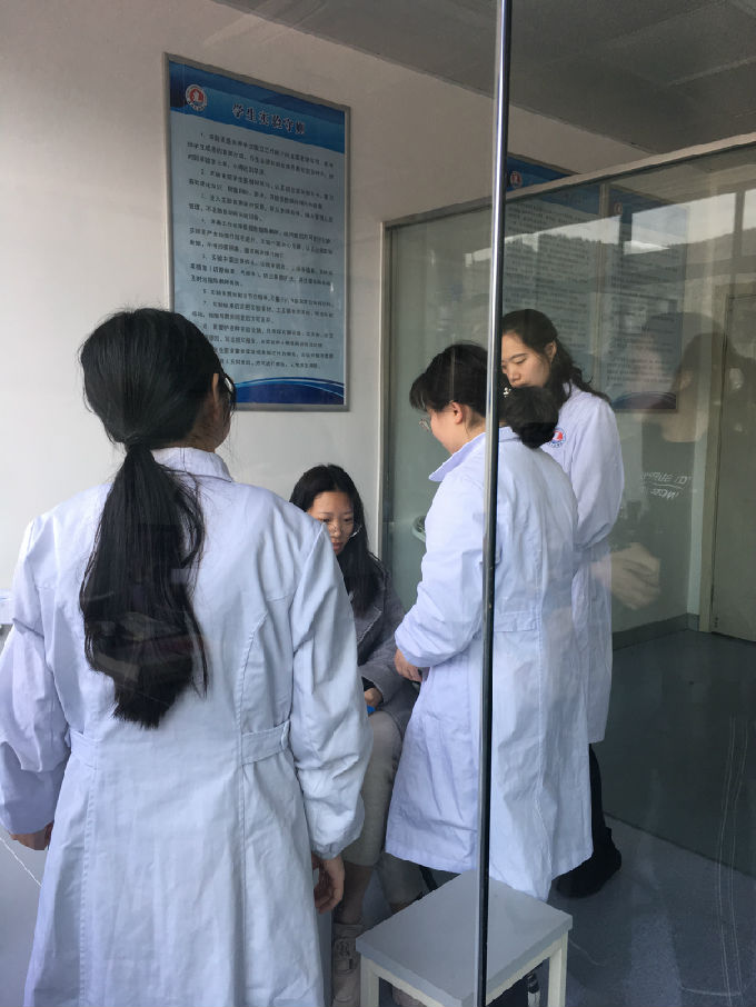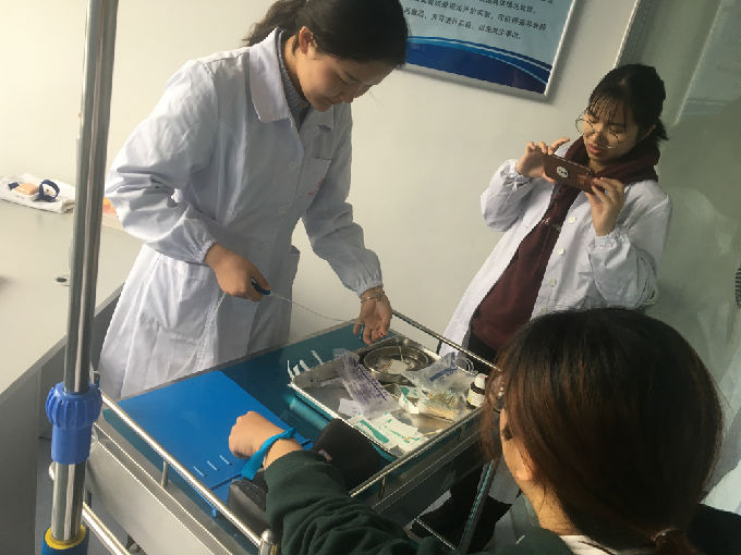 对于开放的实验室,实行全天开放的模式,每一项操作的实验用品都准备齐全,学生们自愿前来练习操作。我们每天都有值班老师,每一项的操作都有相应的指导老师,由赵春艳老师、吴心雨老师、刘敏杰老师、任凯老师、杨小仙老师这五位老师为我们指导和考核,让同学们在实习前掌握好各项基础的技能操作。在老师们的督促下,同学们的操作全部按照最严格的考核标准进行,大大提高了同学们的护理操作水平。