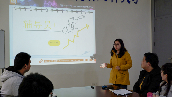 首先,18级辅导员王明鑫就学生干部培训和学业与职业规划进行分享。作为学工行政班班主任的王明鑫老师提到,班集体和班级学生干部是每个班级最重要的组成部分,而且离不开班委班级机制的建设和传承。王明鑫老师提出了“1+X”计划,学生规划需要定制化个性化,一个学生在具备良好的专业能力外,同时要争取多个领域的技能和素养。