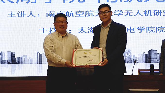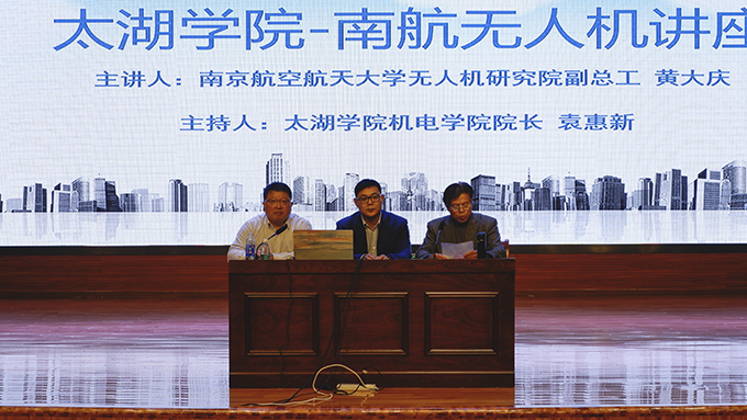 讲座开始前,陈鹏飞副校长代表学校向黄大庆教授颁发聘书,聘请黄教授为无锡太湖学院客座教授。讲座开始,黄教授向同学们简述了国内外无人机技术的发展历史和主要历程,展示并分析了当今无人机系统的技术现状。讲解了无人机系统的类型、组成和分系统专业技术的主要内容,结合典型机型分析其总体设计的性能特点和战术技术指示阐述了无人机系统的技术发展方向、重要应用方向和分系统专业技术的发展方向。讲座过程中,黄教授不时用精彩的案例和生动的语言给大家讲解专业知识,让同学们感受到科技的魅力。