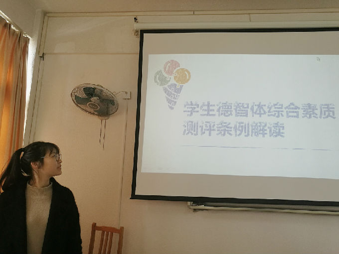 再次,学委认真解读学生德智体综合素质测评条例,让同学们更好地了解综合测评的加分细则。随后,学委又对学生综合素质测评评定表进行指导填写。为了贯彻综合测评的民主性,测评小组还会对每位同学的德育基本分对照其平时表现进行考核。
