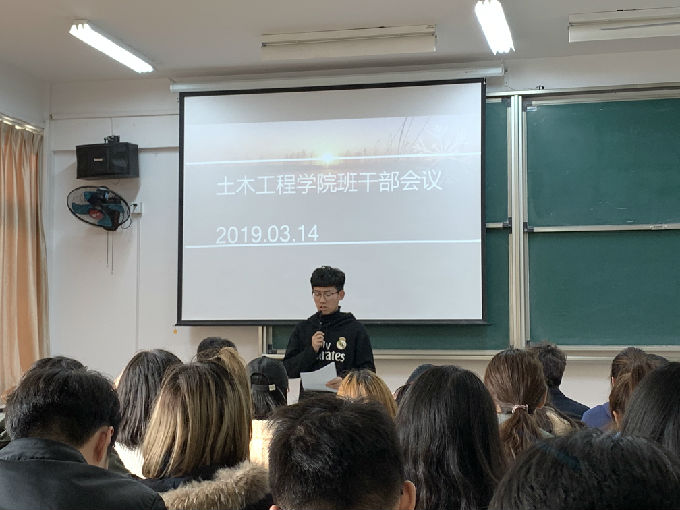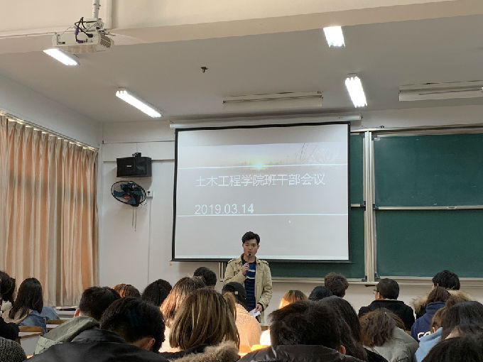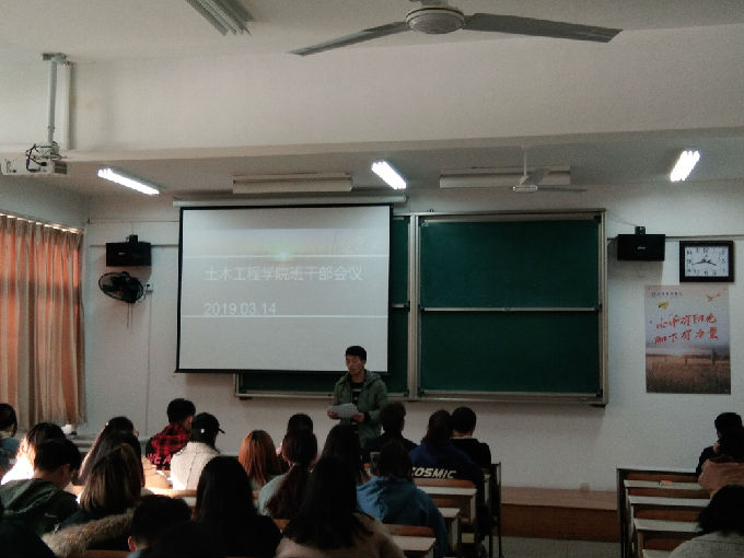 3月14日下午,土木工程学院在7号楼116教室举行2018-2019学年第二学期全体班干部会议,本次会议由土木工程学院学工秘书朱敏主持,土木工程学院党总支副书记余波、土木工程学院大一至大三全体班干部参加了此次会议。