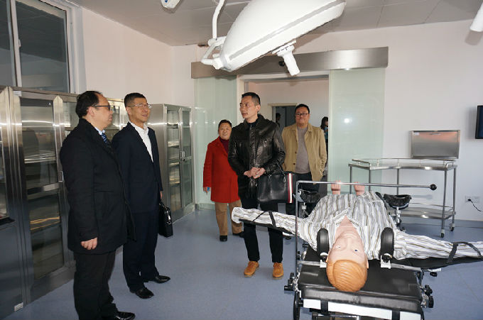 周鸣鸣院长、胡宇书记带领来访参观老年护理技能实验室