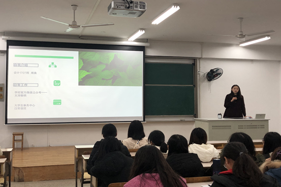 接着由太湖春晓的小编周袁同学,宣讲太湖春晓的投稿流程,她用简洁的语言配合清晰的图片介绍了投稿要求和流程,同时展示了一系列优秀作品,并鼓励同学们多多向太湖春晓投稿,通过投稿来锻炼自己。