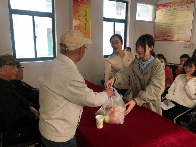 最后,我院同学向老党员们献上慰问品并送上祝福。