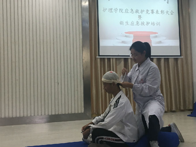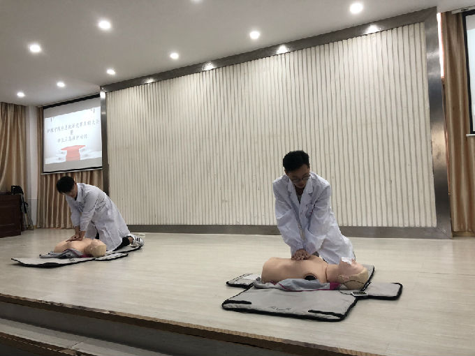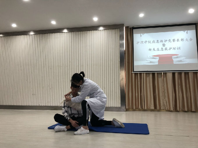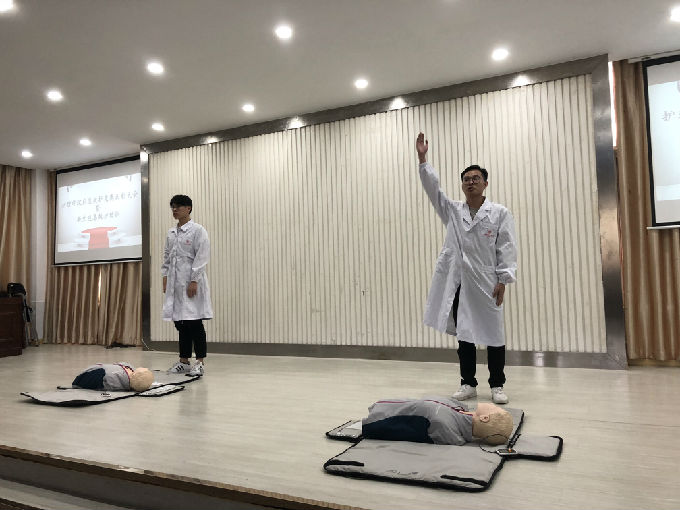 最后,我校参赛代表在现场演示了本次参赛内容,并对大一新生进行了应急救护培训,充分体现了参赛学生扎实的专业技能,赢得了在场师生热烈的掌声!