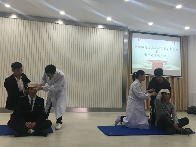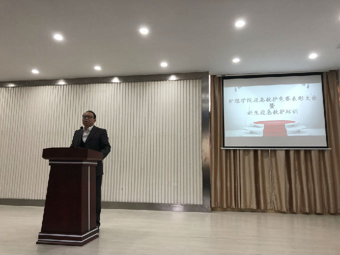2018年11月1日12:30在大学生活动中心护理学院隆重召开护理学院关于江苏省大学生应急救护竞赛表彰大会暨新生应急救护培训,出席大会的有护理学院副院长周鸣鸣、护理学院党总支副书记胡宇、护理学院应急救护大赛指导老师杨小仙、护理学院学工秘书马晓星及护理学院全体师生员工。