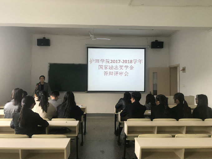 我院2017-2018学年国家励志奖学金答辩评审会于2018年10月18日下午在五号楼202教室举行,护理学院党总支副书记胡宇出席会议,各年级辅导员作为评委参加会议并投票。