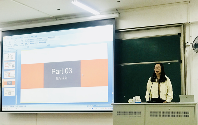 两位学长给同学们提出了要求:确保每天有3个小时有效学习时间,充分利用时间,考研的成功,不在于你复习多长的时间,而在于时间、效率、耐力三者的乘积。考研是自己选择的最愿意去走的道路,不管前面会遇到什么,考研的决心一旦作出就要义无反顾、勇往直前。