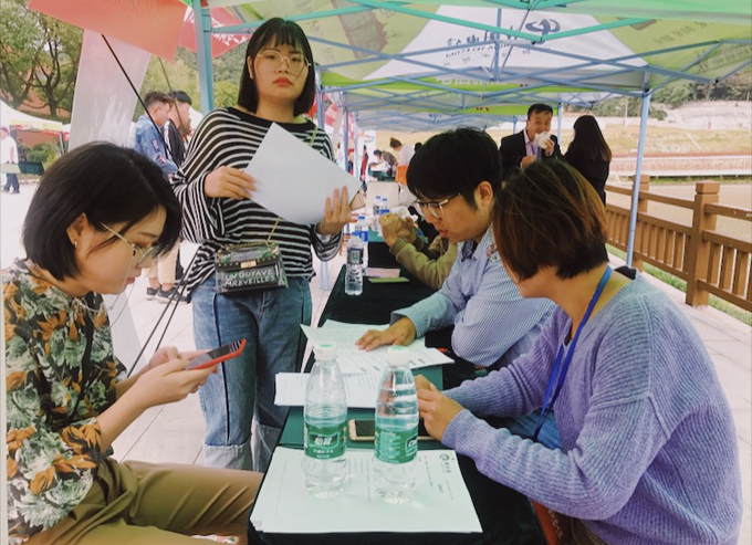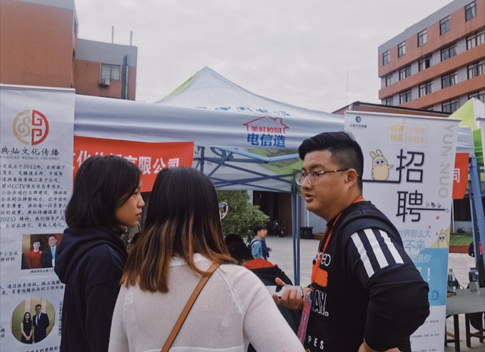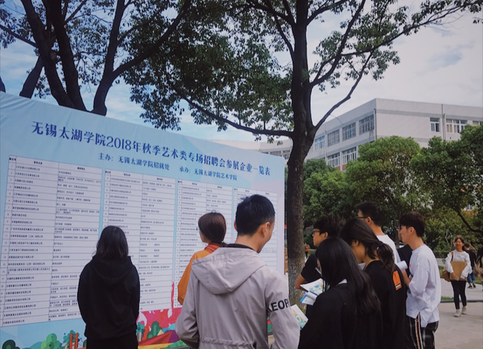 本网讯 为进一步提高毕业班学生就业针对性和时效性,艺术学院不断加强与用人单位沟通交流,为学生搭建起提前接触社会、了解岗位能力要求的平台,10月10日无锡太湖学院艺术学院在六号楼大学生事务中心前举行2018年秋季招聘会。