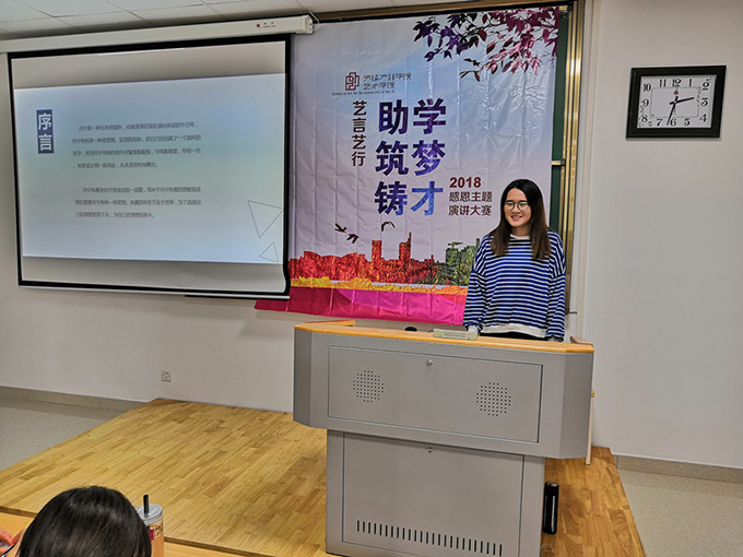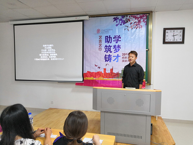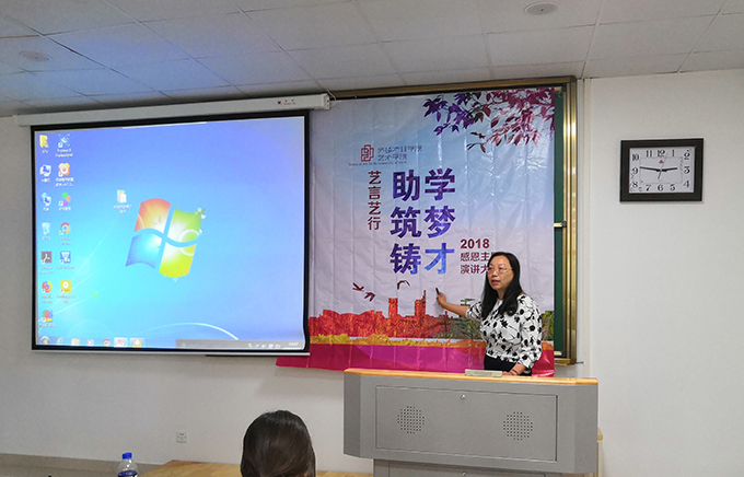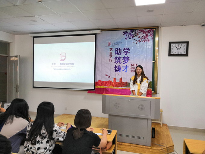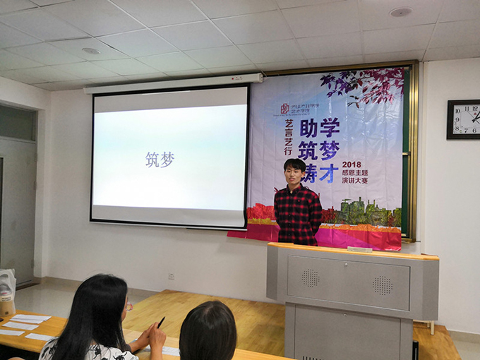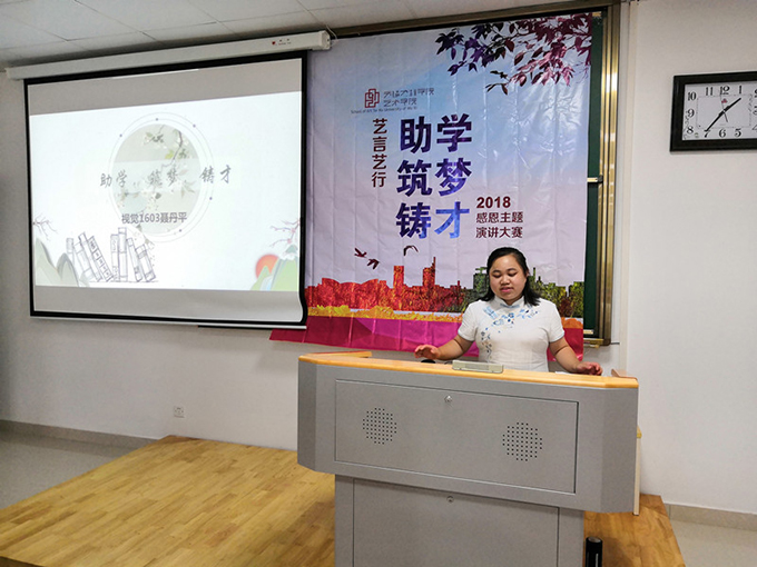9月27日,“艺言艺行•助学筑梦铸才”感恩主题演讲赛在工科实验大楼A302多媒体室圆满举行。