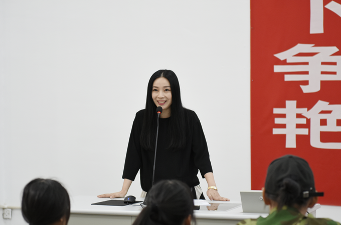 会议第三项,教师代表视觉传达设计系龙佳骊副教授发言。龙老师结合自己在太湖十四个春秋的执教生涯向新生讲述了自身的经历、看法与意见。龙老师希望同学们对于学习、生活能够做到热爱并全情投入;做到自律和坚持;能够树立梦想,制定目标并付诸实施。三点建议是龙老师十四年太湖教学生活的总结,龙老师最后说到,“在你所处的这个区域,只有不停奔跑,才能让你保持在原地,而不至于后退”。