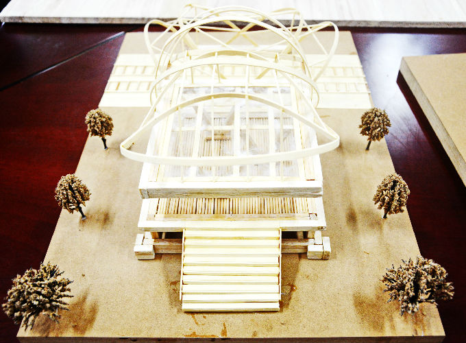 之后模型设计组的也带来了他们设计的房屋与高铁站的模型,参赛选手分别就模型结构、设计思路以及所用材料为大家进行了详细的讲解,并认真回答了评委们所提出的问题。