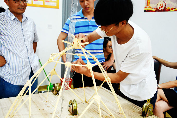 经过前期一个多月的精心准备,以及模型的设计与制作,参赛选手们在比赛的过程中都显得十分淡定从容,各组模型各有特色,各参赛队伍都充分运用学习的专业知识,本着让“最小的质量承载最大载荷”的原则,精心设计自己的作品。