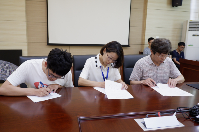 本网讯 7月12日,无锡太湖学院机电工程学院与罗斯(无锡)设备有限公司、无锡晋拓电子科技有限公司、速波机器人无锡有限公司、无锡蠡湖增压技术有限公司共建校企合作学生实习实训签约会在6号楼二楼会议室顺利举行,出席本次会议的企业代表有:晋拓董事长张东、总经理王群;罗斯公司行政主管钱晓亚;速波公司经理李晓燕;蠡湖公司经理陈萍。签约会由机电工程学院党总支副书记杨学圣主持,院长袁惠新、副院长刘国栋、副院长杨敏携全体教职工、学生代表参加此次会议。