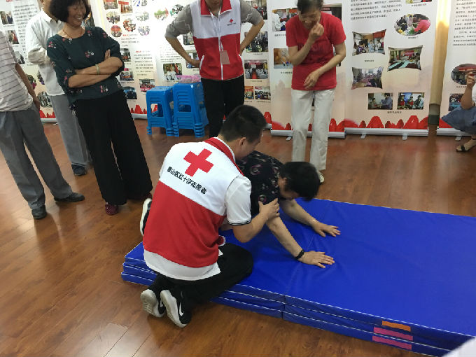 太湖学院红十字会志愿者组织社区老人学习“如何正确摔倒”