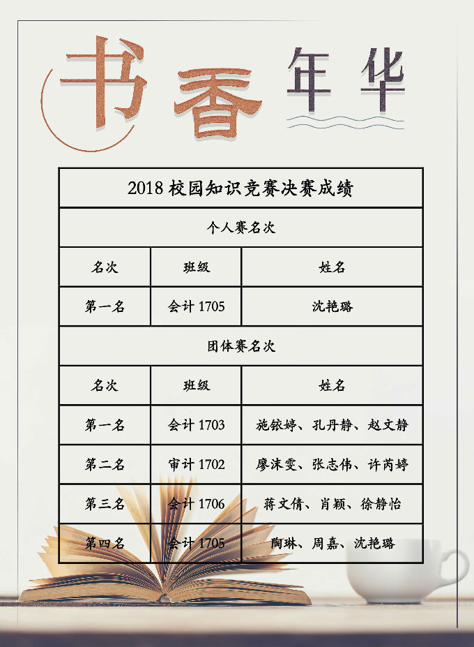 为了调动学生对学习的兴趣和热情,持续激发学生对知识的兴趣,在竞赛中感受到知识的力量,充实和激励自我,丰富课余生活,增进彼此之间的友谊。通过一系列的初赛,复赛,2018年5月30日晚上18:30,在大学生音乐中心举行由共青团无锡太湖学院委员会主办,会计学院学生会承办的“书香年华”校园知识竞赛总决赛。