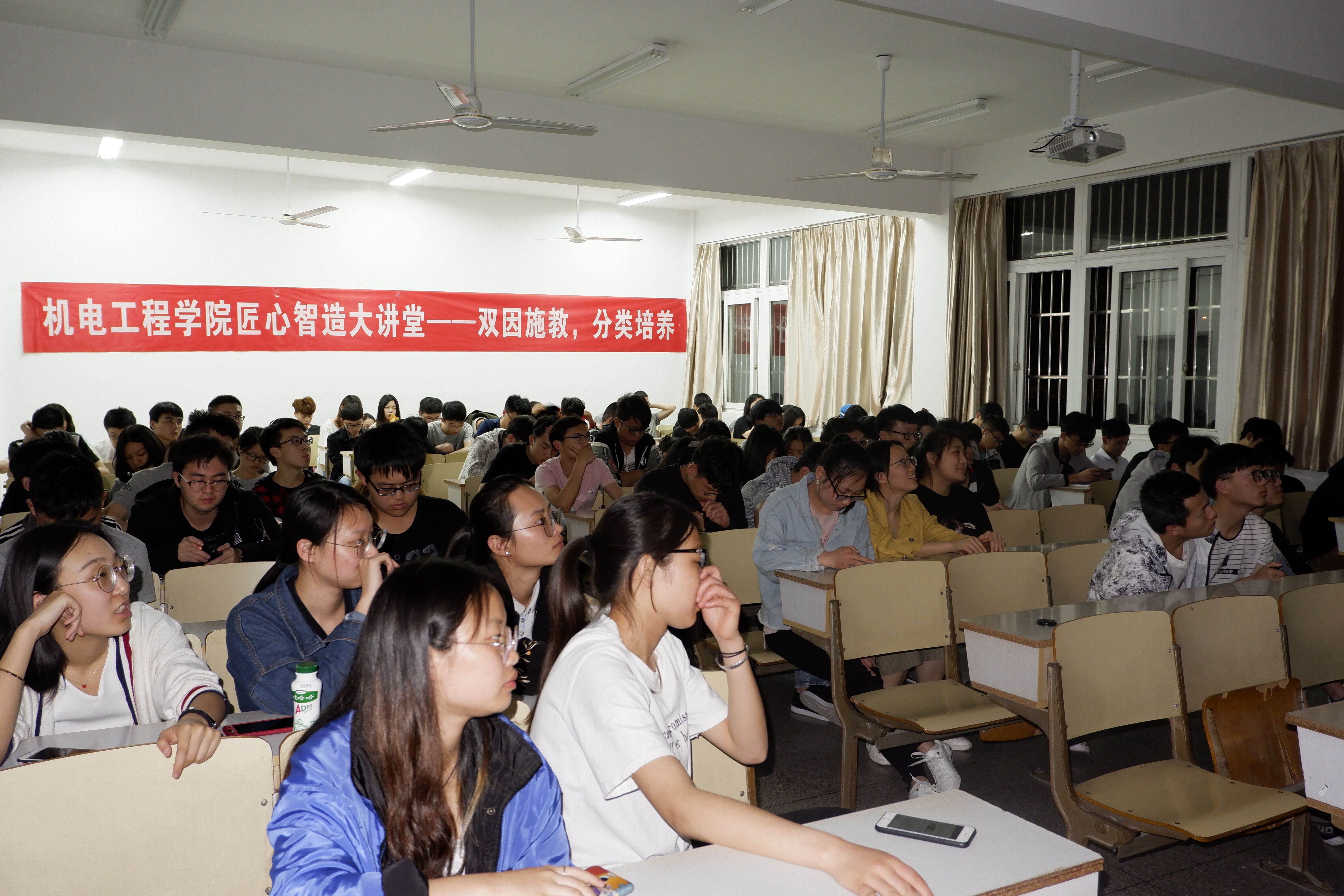 2018年5月10日下午6:00,机电工程学院第三期匠心智造大讲堂活动于7号楼117室举行。本次讲座由无锡菡杰芮科技有限公司创始人、CEO李飞主讲。