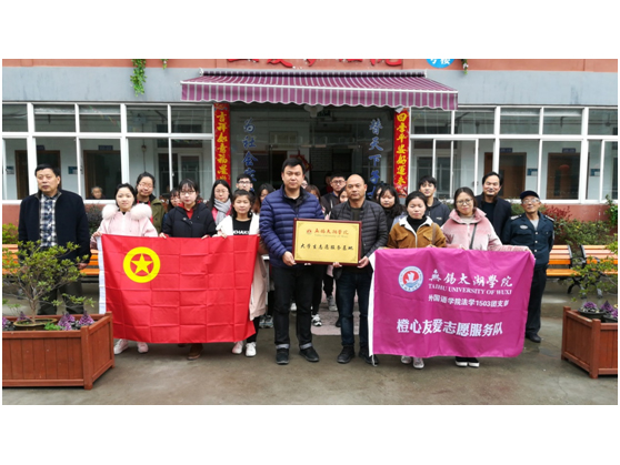 3月21日星期三14:30,我校外国语学院法学1503班团支部的18位同学,组成“橙心友爱志愿服务队”,在法学1503班团支书的带领下,满怀期待的来到了五爱护理院。外国语学院党总支副书记俞昊波出席本次挂牌仪式。挂牌仪式结束后,志愿者们向护理院的工作人员宣传有关节能环保的知识并且在团支书的带领下,看望老人,奉献爱心。通过此次实践活动,希望同学们了解到,社会实践不但能够让自我得到满足,也为他人带去关爱。对于老人,一点点陪伴,一点点关心,就是对他们最大的回报。