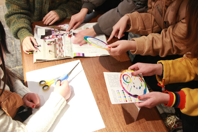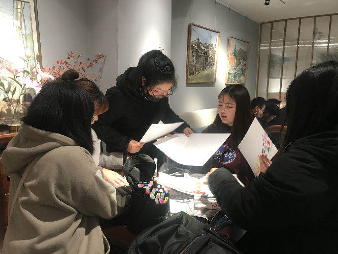 艺院学子教学沙龙现场练习色彩搭配