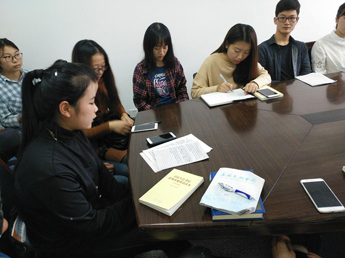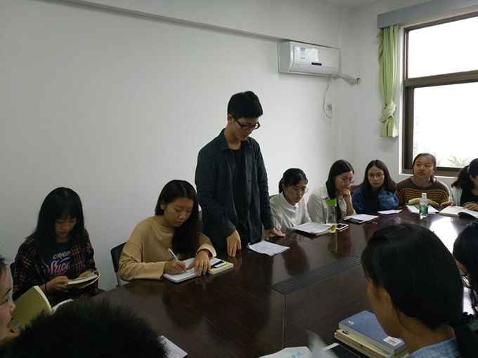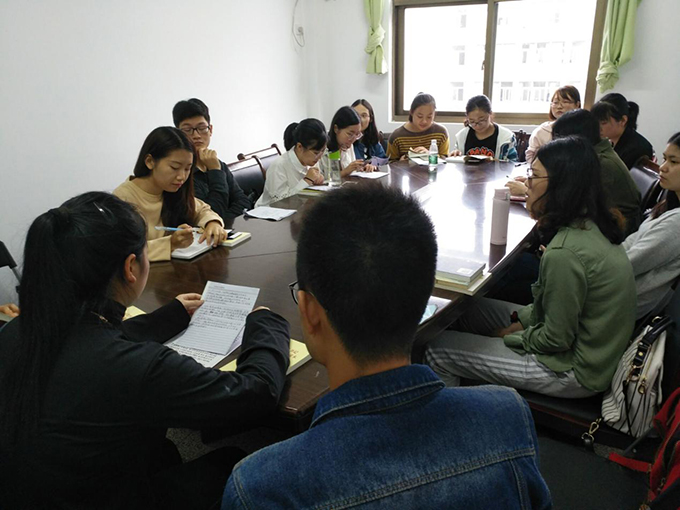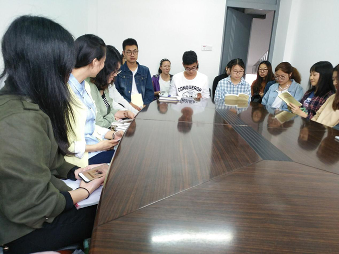 我校外国语学院学生党支部于10月11日在六号楼副楼外国语学院党校组织学生党员集中学习《习近平总书记系列重要讲话读本》,20多名党员参加了本次研讨专题会议。