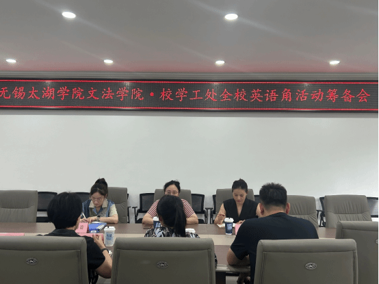 无锡太湖学院党委学生工作部部长吴学林,学生工作部教师陈妍妍、聂雨苗,文法学院副院长(主持工作)黄旭,副院长刘荔、吴旻昊,以及文法学院党总支副书记俞昊波出席了本次会议。本次会议的召开标志着全校英语角活动进入实质性筹备阶段,下一步将结合师生需求和校园特色,推动活动创新开展,打造高质量的英语学习交流平台。