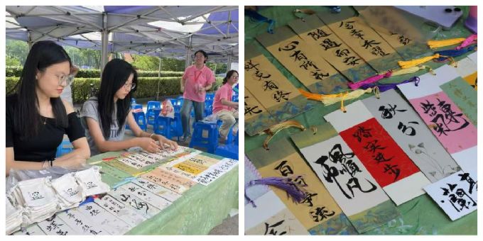 活动现场设置展览区。精美的书签各式各样,印有社团标志的香囊小巧精致,既有苍劲有力的楷书,也有飘逸灵动的行书,新生和家长们或驻足欣赏,或轻声交流,不时发出由衷的赞叹。现场还设置了互动环节,新生们通过参与书画知识问答,不仅学到了丰富的书画知识,还赢得了协会精心准备的小礼品。
