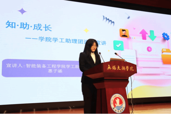 学姐引路:机电 2301 班惠子涵(学工助理团主席),她详细介绍助理团职能,秘书部协助日常工作与活动策划、新媒体部负责宣传运营、综合部保障活动执行,成员可获聘书、综合测评加分、PU 分等奖励,积极邀请新生加入共促成长。