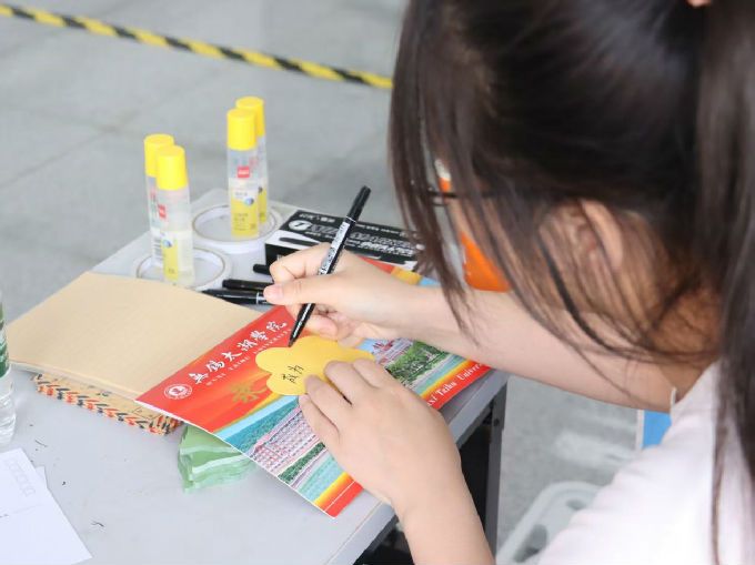 为进一步增强新生归属感,学院推出“大学初印象,心愿纸间藏”主题寄语活动,通过“牵线初见”、书写明信片、张贴心愿便利贴等互动形式,搭建情感表达与交流平台。许多家长也现场为孩子写下家书,字句深情寄托殷切期望,成为迎新现场一道温情的风景。校领导在视察过程中特别驻足心愿墙前,仔细阅读同学们的留言,并对这一富有意义的活动表示赞许