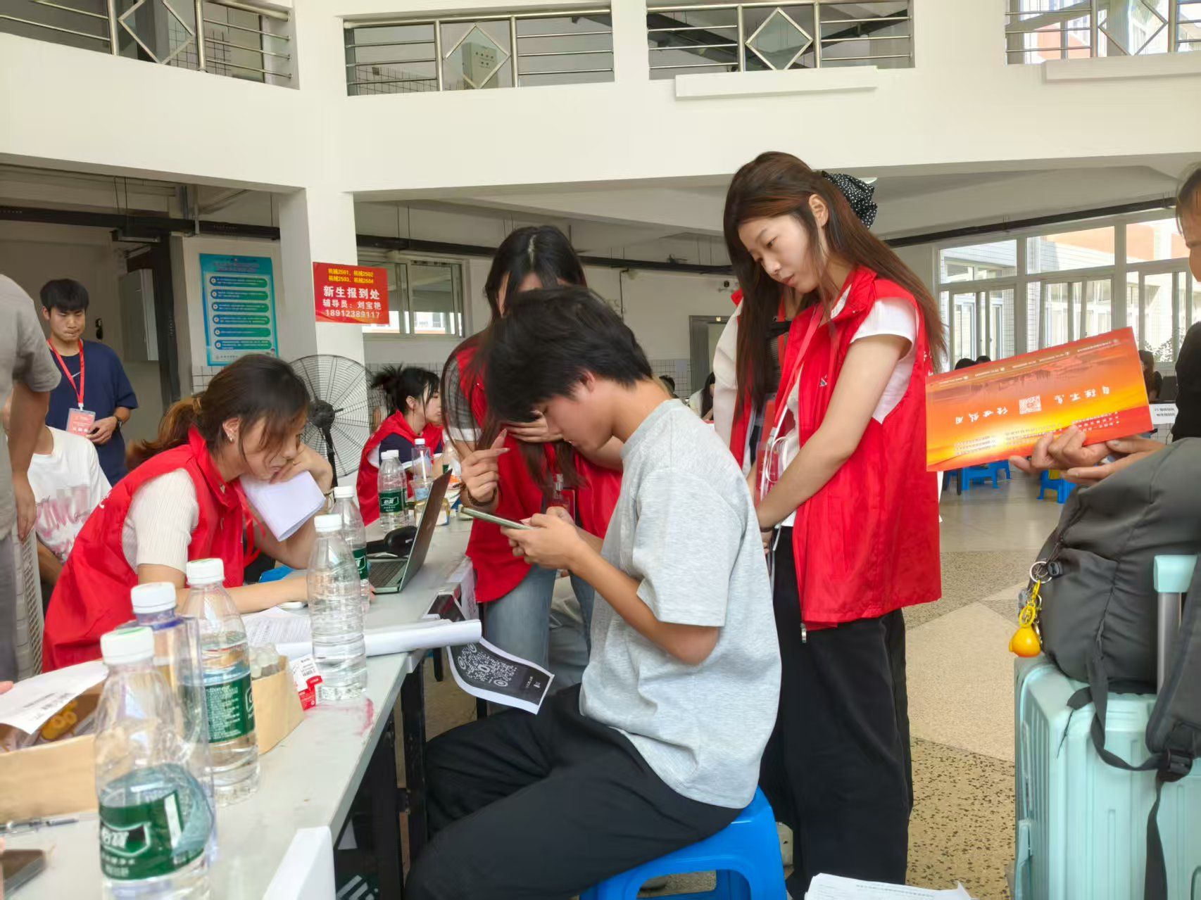 为保障新生报到顺畅,智能建造学院团总支及学生会提前招募培训了多名迎新志愿者。报到现场,身着统一服装的志愿者们分工明确、热情满满,成为校园里最亮眼的“志愿红”。在报到处,他们协助新生核对身份信息、提交材料、领取校园卡与物资,耐心解答新生及家长的问题;在宿舍区,志愿者帮新生搬运行李上楼,还主动分享宿舍生活小技巧,协助新生整理行李,用行动化解新生初到陌生环境的紧张感。学院还设置了新生报到打卡点,为新生和家长留下宝贵时刻。