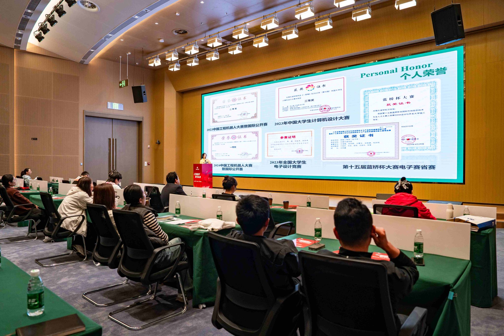 前期,学院各毕业班班主任已全程指导学生优化面试PPT,帮助学子梳理专业能力、实践经历与职业规划,充分做好展示准备。展示环节中,20名物联网学子依次登台,围绕专业背景、核心技能、项目成果及岗位意向进行5分钟精彩呈现,充分展现物联网专业学子扎实的技术功底与良好的综合素养。企业HR认真聆听、现场提问,并在规定时间内举牌表达选聘意向,现场氛围热烈有序。
