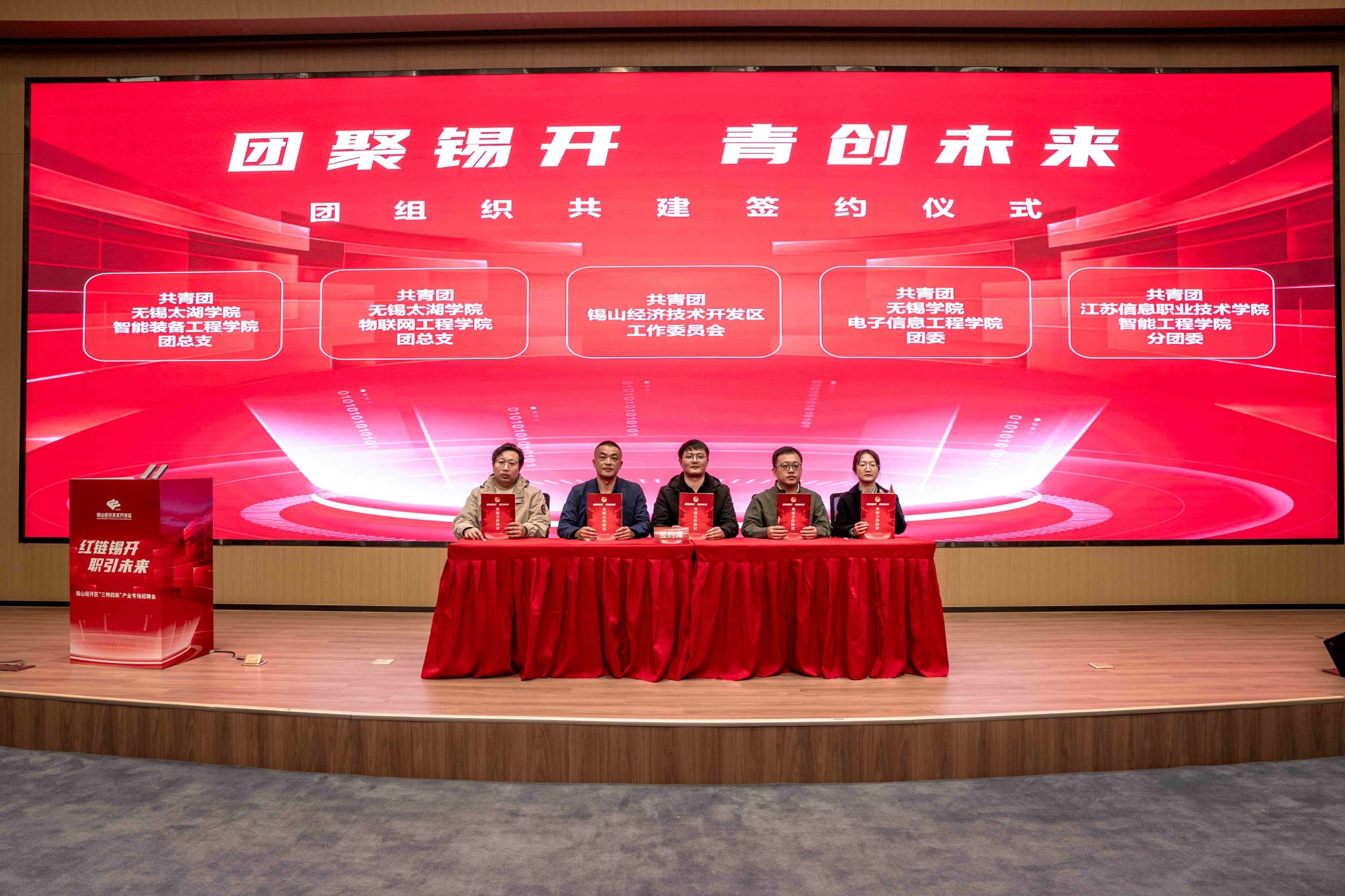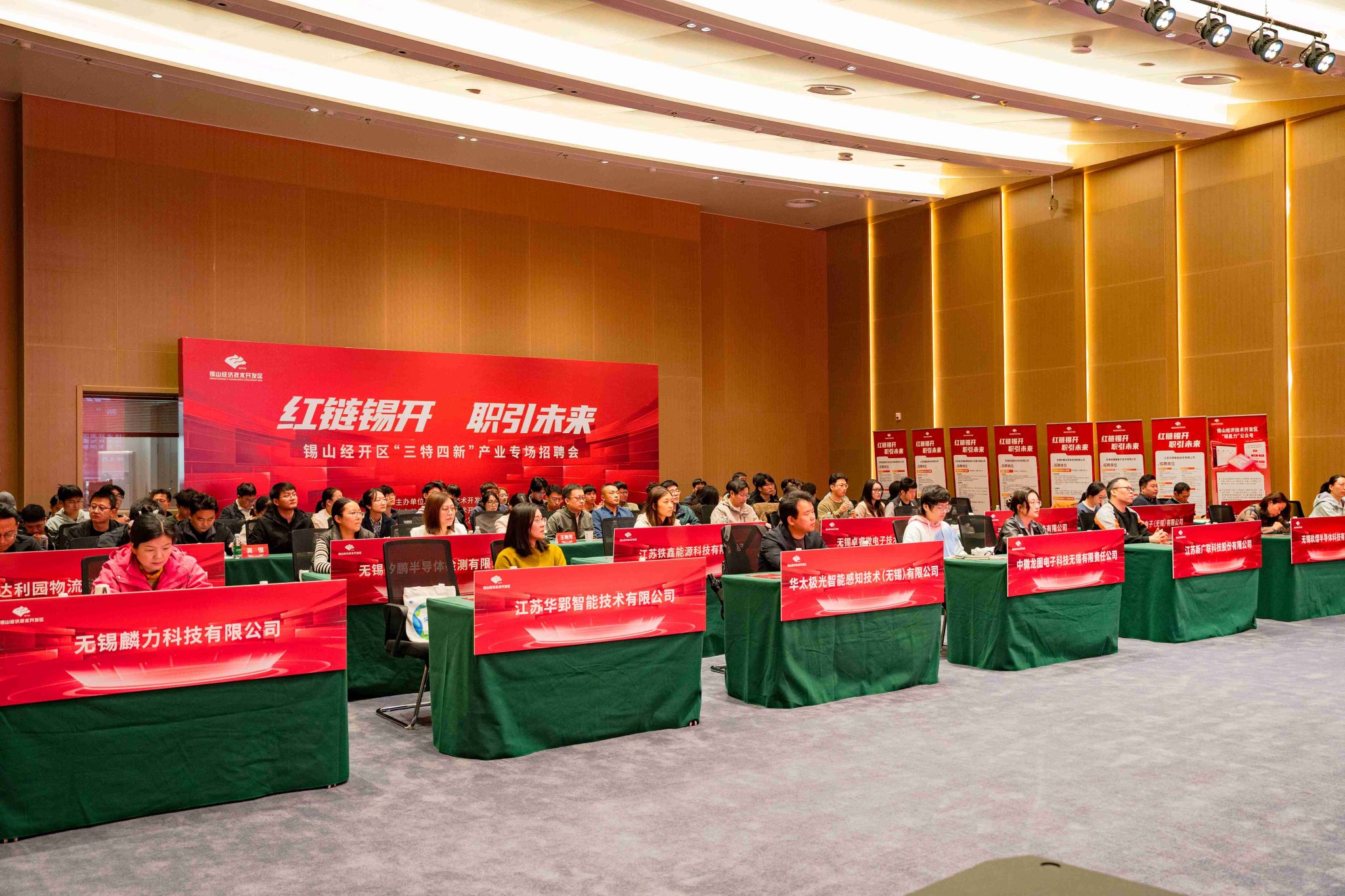 为深化产教融合、拓宽物联网工程学院学子高质量就业渠道,2026年4月17日,锡山经济技术开发区“红链锡开・职引未来”专场招聘会在长三角工业芯谷会展中心成功举办。物联网工程学院党总支副书记沈峰、带队老师万乐玲携20名物联网工程专业学子参会,校企签约、学生展示、现场举牌等环节有序开展,活动成效显著。