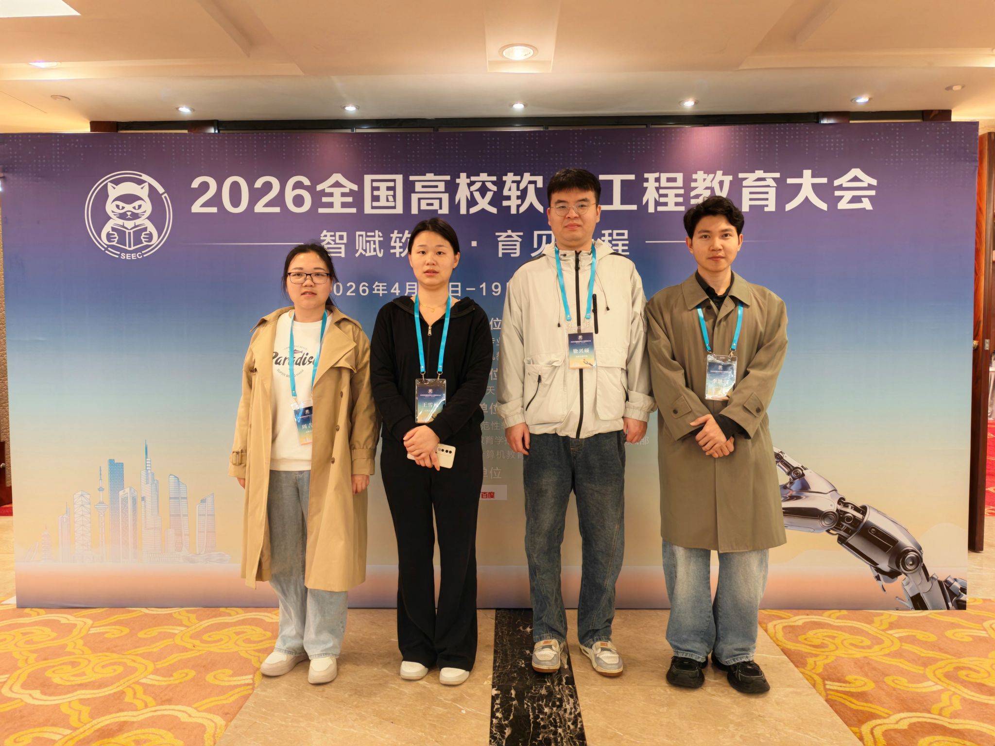 为紧跟软件工程教育前沿动态,深化教育教学改革,创新人工智能时代软件工程人才培养模式,2026 年 4 月 17 日至 19 日,无锡太湖学院物联网工程学院周吉莉、王雪凤、李继强、徐兴硕四位教师赴南京参加2026 全国高校软件工程教育大会。本次大会由教育部高等学校软件工程专业教学指导委员会主办、南京航空航天大学承办,以 “智赋软工・育见新程” 为主题,汇聚全国软件工程教育领域专家学者、骨干教师及产业界代表,共同研讨新时代软件工程教育改革与人才培养创新路径。