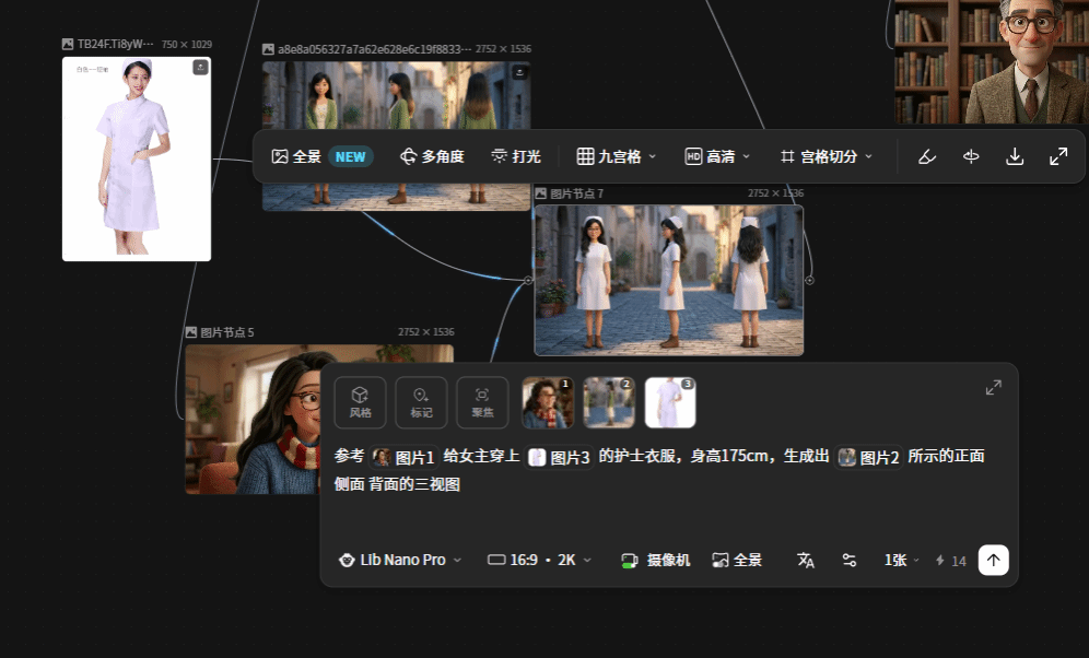 在此基础上,他补充讲解了通俗易懂、简单易上手的AI人物换装实操方法:只需提前准备好已定型的人物三视图,再备好想要更换的服装参考图片,将人物三视图与目标服装素材一并交给AI。依靠三视图锁定人物面部、身形、骨骼基础特征,保证人物样貌、体态全程不变;AI会自主匹配人物肢体姿态,贴合身形完成服装替换,精准适配光影与轮廓,在不改动原有人物特征的前提下完成一键换装,有效避免穿模、形象错乱,实现人物统一。