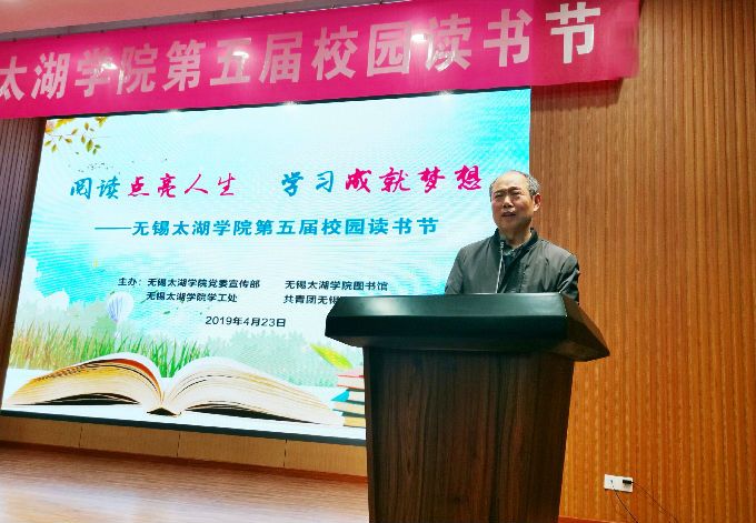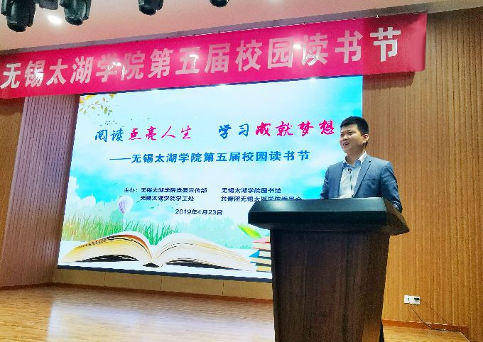 本网讯 读书不觉已春深,一寸光阴一寸金。2019年4月23日,在第24个“世界读书日”来临之际,无锡太湖学院第五届读书节开幕式在大学生活动中心隆重举行。本届读书节活动以“阅读经典 优化学风 立志成才”为主题,由无锡太湖学院党委宣传部、图书馆、学生工作处、团委联合举办。党委宣传部、图书馆、学生工作处、团委、校长办公室负责人,各二级学院院长、党总支书记、副书记和负责宣传工作的具体人员,大一各班班长、团支书、宣传委员,大学生记者团、新媒体中心等学生组织与学生代表出席开幕仪式。开幕式由党委宣传部部长阙明坤主持。