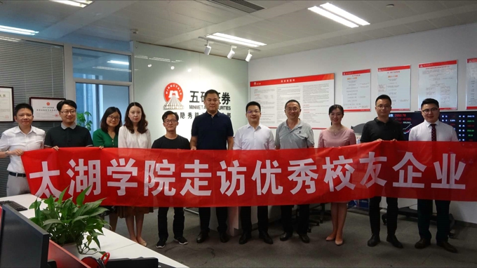 为更好宣传优秀校友事迹,勉励广大毕业生努力奋斗,激励在校学生砥砺奋进,扩大学校对外影响,架起母校与校友之间的沟通桥梁,6月11日,无锡太湖学院校长助理阙明坤一行走访无锡博瑞吉教育投资有限公司、五矿证券无锡隐秀路营业部、无锡名万机械制造有限公司等在锡优秀校友企业。商学院院长徐立青、副院长陈倩,党委宣传部副部长许松,商学院旅游系主任许沁乔、金融系主任钱娜、人资系教师马彪,党委宣传部科员杨岭等一同走访。