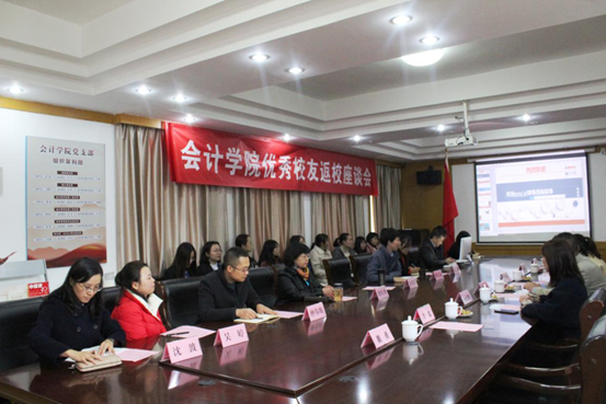 为了响应学校学风建设月的号召,无锡太湖学院会计学院邀请了优秀校友返校进行交流。于11月28日下午两点,各位领导和五位校友在会计学院207教室开展座谈会。